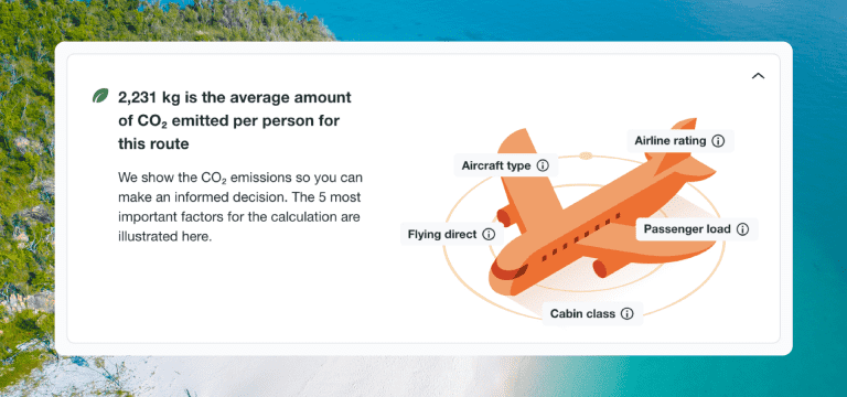 Once selected, we’ll also show you the average amount of CO2 emitted per traveller for your route – as a way to stay informed about your impact and how the flight you select will impact your own carbon footprint.